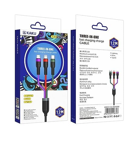 Cavo di ricarica multi USB 3A 1.2M Cavo di ricarica 3 in 1 con porte IP/Micro USB/Tipo C per dispositivi Telefono iPhone/Tablet/Samsung Galaxy/Huawei/LG/Google Pixel