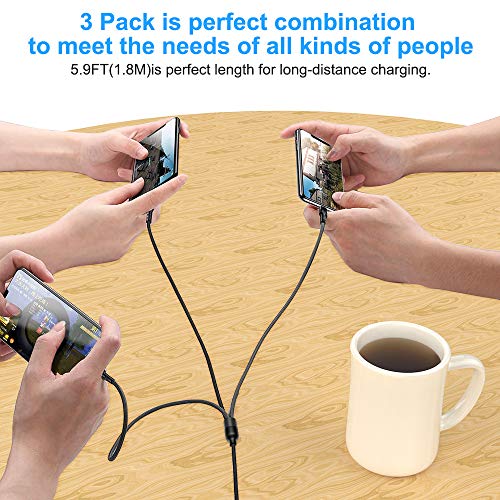 ❀【Lunga con 1,8 m】 Lunga 1,8 m/1,8 m, ideale per l'uso a lunga distanza in casa, in ufficio, in auto, in viaggio e in altri luoghi. Non preoccuparti di non avere una portata sufficiente dal cavo di ricarica del telefono. Compatibile con iPhone 12/11 Pro Max/11/Xs/Xr/X 8/8 Plus/7/7 Plus/6/6 Plus/6S/6S Plus/SE 5/5S e Pad/Pad Mini/Pad Pro, USB Micro per An. Telefoni droid e accessori wireless, e USB tipo C compatibile per Google Chrome book Pixel/Pixel C, Samsung Galaxy S9/S9 Plus, Huawei.