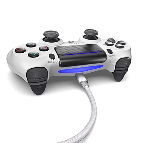 2x 4m cavo di ricarica in Nylon PS4 per Playstation 4 Controller, cavo Micro USB, cavo di ricarica Micro USB, Micro USB, guaina in tessuto, spina in alluminio, bianco