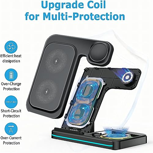 Stazione di ricarica wireless sicura: la stazione di ricarica per dispositivi Apple è dotata di dissipatori di calore, protezione da surriscaldamento, protezione da sovratensione, protezione da cortocircuito, protezione da sovracorrente e altro ancora, rendendo la ricarica più sicura.