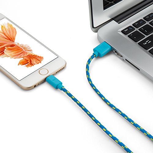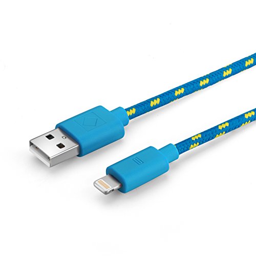 Cavo di ricarica 8 pin cavo dati USB tessile 1 metri - iOS 9 - per iPhone 6s, 6s Plus, iPhone 6, 6 Plus, iPhone SE, 5s, 5c, 5, iPad Pro, iPad Air, iPad Mini, iPod Touch in blu von PhoneStar