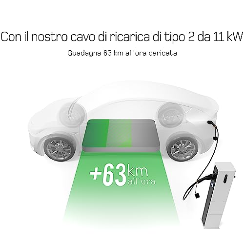 【Ampia compatibilità】Compatibile con la maggior parte dei veicoli con connettore di tipo 2 come e-208, 500e, Megane EV, Zoe, Model Y, Model 3, Spring, ZOE, i3, i4 e altri BEV/PHEV.