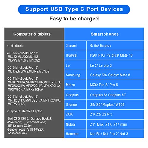 Ottima compatibilità: supporta QC 3.0 e diligenza di potenza, compatibile con la maggior parte dei tablet e degli smartphone usb c, come: McBook Pro 13 "/ 15" 2016/2017, Chromebook Pixel, ZenBook 3 / ZenBook Pro, HP Spectre x360, Nintendo Switch, Moto Z, Microsoft Surface Book, Samsung Galaxy Note 8 / Galaxy S9 / S9 Plus e altro ancora. Ma non supporta la modalità di ricarica super veloce Huawei, non compatibile con altri cavi di ricarica magnetici Lively Life