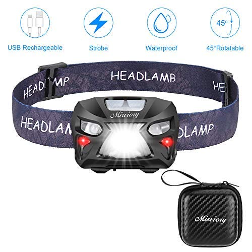 USB ricaricabile lampada frontale, impermeabile LED lampada testa Dimmable, leggero e ultra luminosi - Bianco/Rosso/So mirviory di eu