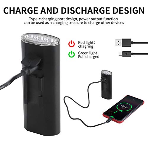 USB ricaricabile e indicatore di alimentazione: Luce anteriore per bici incorporata in batterie ad alta capacità da 4000 mAh con l'ultimo cavo di ricarica USB di tipo C. L'indicatore di alimentazione mostra la luce rossa alla luce verde quando la ricarica è completamente carica. Facile da controllare la potenza. La luce posteriore è dotata di cavo di ricarica USB.