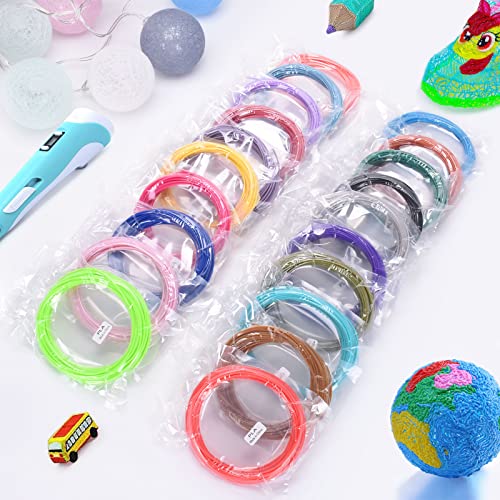 Ricariche di filamento in PLA per penna 3D, Wiseten, 20 colori, filamento per penna 3D, 1,75 mm, 32,8 piedi per colore totale 656 piedi per la maggior parte delle stampanti 3D intelligenti