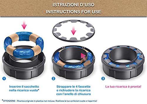 PRATICHE - 8 ricariche pronte da utilizzare, contenenti ciascuna fino a 220 pannolini (variabile a seconda della dimensione dei pannolini e del modello di mangiapannolini utilizzato)