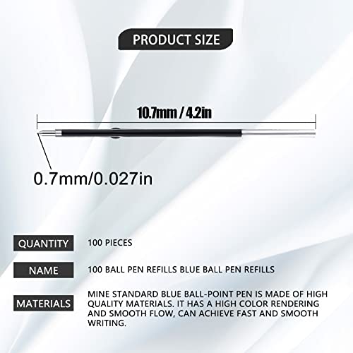 Contenuto della confezione: riceverai 100 ricariche per penna a sfera da 0,7 mm, ricariche per penna a sfera blu standard, sufficienti per l'uso e la sostituzione in ufficio. (Nota: questo prodotto è una ricarica per penna a sfera, non una ricarica a base d'acqua)