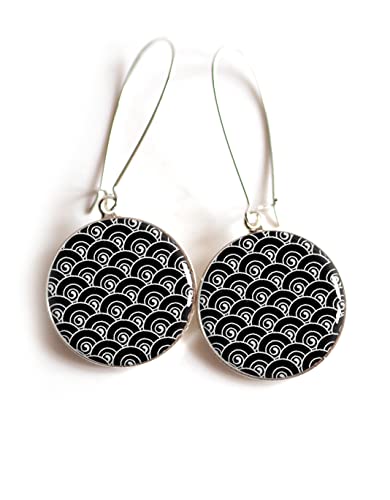 Ricci di orecchi cabochon Giappone, onda, nera e minima