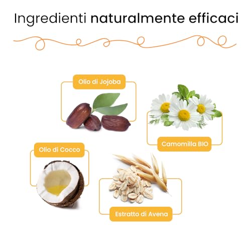 PROPRIETÀ: formula con estratti di avena e camomilla bio, oli di cocco e jojoba. Grazie alle sue proprietà idrata ed elasticizza i ricci, elimina l'effetto crespo e facilita la districabilità