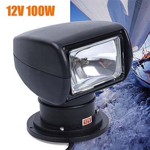 100 W 12 V 360 ° Faro di ricerca per esterni, luce marina, per barche, yacht, camion, auto, barche da pesca (nero, telecomando avanzato)
