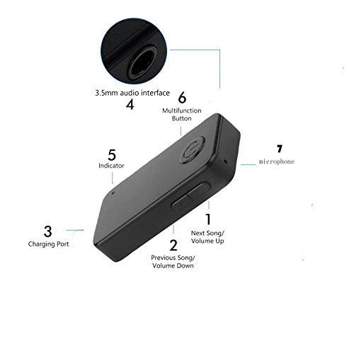 Doppio collegamenti e ampia compatibilità: amichevole portatile Bluetooth ricevitore Bluetooth possono collegare due dispositivi allo stesso tempo.e si potrebbe anche compatibile con la maggior parte degli smartphone e bluetooth Electronics, ideale per la casa o per i sistemi audio e cuffie con cavo (collegato con 3.5 mm cavo audio/adattatore associa il tuo telefono con per raggiungere l' ascolto della musica o rispondere alle chiamate).