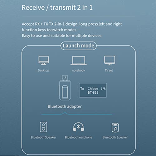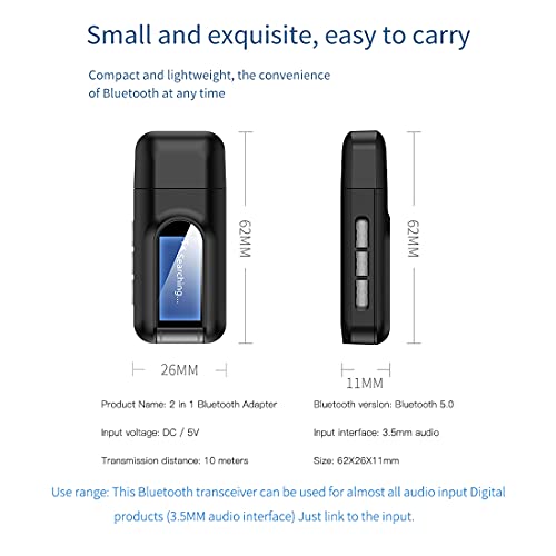 【Ricevitore trasmettitore Bluetooth】1. Modalità trasmettitore (TX): trasmette l'audio da sorgenti audio non Bluetooth (TV, PC, lettore CD, ecc.) All'auricolare / altoparlante Bluetooth tramite un cavo audio da 3,5 mm. 2. Modalità ricevitore (RX): trasmissione dell'audio da sorgenti audio Bluetooth (smartphone, tablet) a cuffie / altoparlanti / automobili / sistemi audio domestici non Bluetooth tramite cavi audio da 3,5 mm.