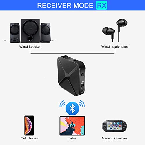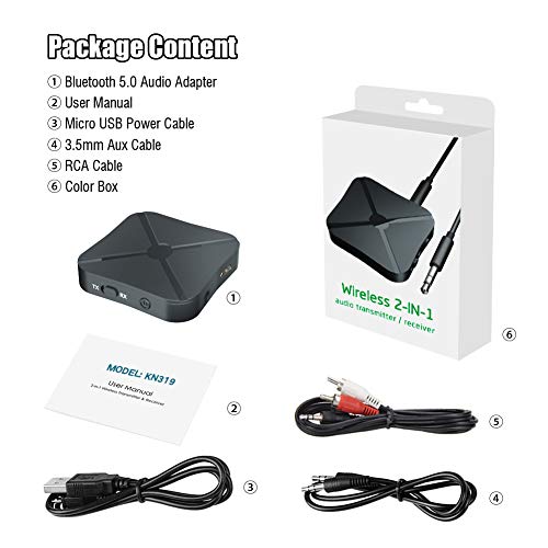 Ricevitore Bluetooth 5.0 Trasmettitore Wireless 2 in 1 Adattatore Bluetooth Bassa Latenza RCA & 3.5mm AUX per TV PC Tablet Altoparlanti (nero)