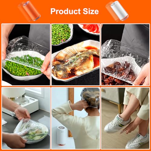 RICHDMI Pellicola per Alimenti con Elastico con 200 Pezzi Sacchetti Salvafreschezza, Coperture Elastiche per Alimenti, Dispenser per Pellicole Alimentari, per Alimenti, Organizer per Cucina