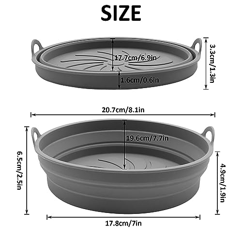 RICHDMI 2 Pezzi Teglie per Friggitrice ad Aria, 20cm Cestino, Accessori per Friggitrice ad Aria, per Friggitrice ad Aria in Silicone, Accessori per Forno e Microonde (Grigio)
