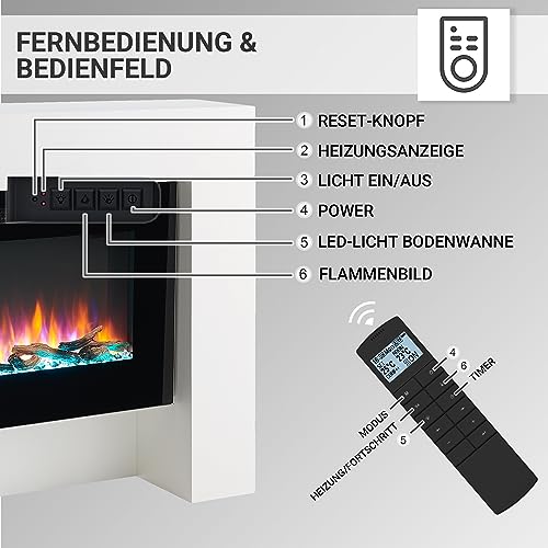 RICHEN camino elettrico da Herkules | Caminetto elettrico a pavimento con effetto fiamma 3D | Riscaldamento elettrico 2000 W | Focolare con telecomando, timer, termostato | Bianco