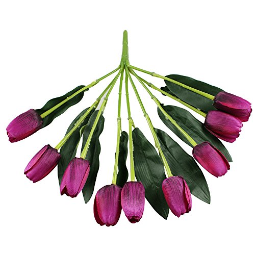 Richera - Mazzi di fiori artificiali, 9 tulipani, fiori artificiali in seta dall'aspetto realistico, per decorazione casa, matrimoni, feste, bouquet, Natale Purple