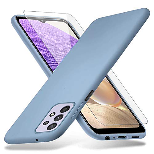 Richgle Compatibile con Cover Samsung Galaxy A32 5G & Pellicola Vetro Temperato, Sottile Silicone Morbido TPU Custodia Cover Case Compatibile con Galaxy A32 5G - Grigio Lavanda RG80917