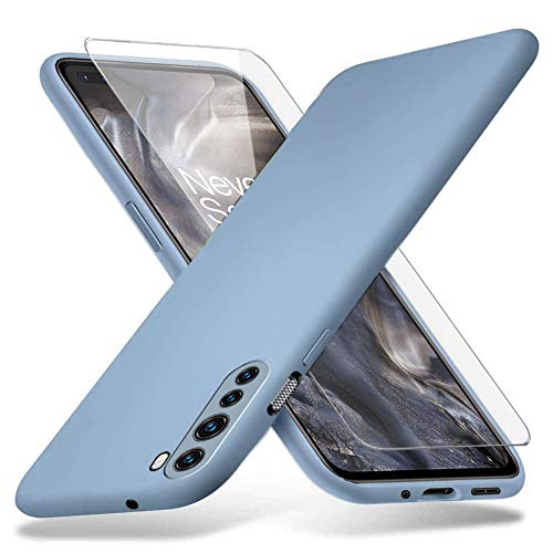 Richgle Cover OnePlus Nord & Pellicola Vetro Temperato, Sottile Silicone Morbido TPU Protettiva Custodia Cover Case per OnePlus Nord 5G - Grigio Lavanda RG80456
