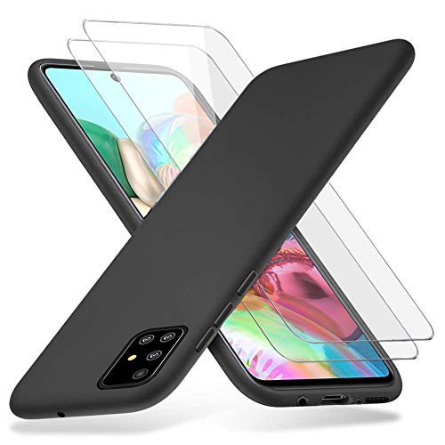 Richgle Cover Samsung Galaxy A71 & [2 Pezzi] Pellicola Vetro Temperato, Sottile Silicone Morbido TPU Protettiva Custodia Cover Case per Samsung Galaxy A71 - Nero RG80117