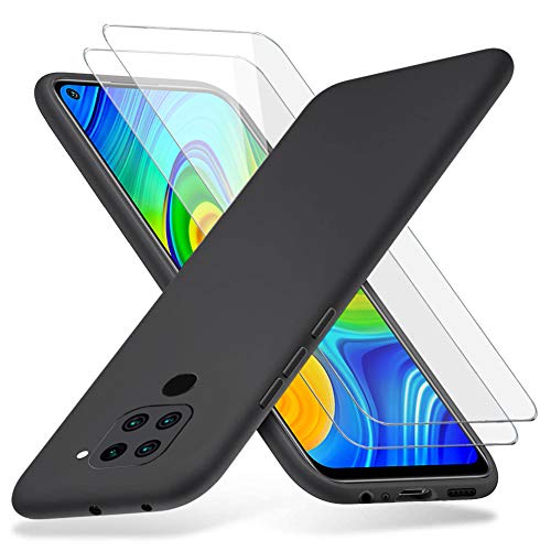 Richgle Cover Xiaomi Redmi Note 9 & [2 Pezzi] Pellicola Vetro Temperato, Sottile Silicone Morbido TPU Protettiva Custodia Cover Case per Xiaomi Redmi Note 9 (6.53") - Nero RG80301