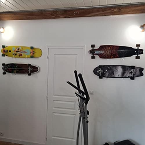 √Materiali di alta qualità: il portapacchi per skateboard a parete (escluso lo skateboard) è realizzato con materiali di alta qualità, resistenti all'usura, robusti, durevoli e di lunga durata. L'espositore ha una vasta gamma di applicazioni. Adatto per la maggior parte degli skateboard o delle tavole lunghe, adatto per case, appartamenti, garage, ecc.