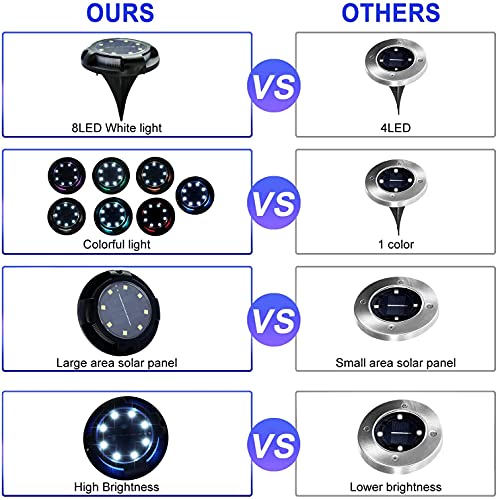 Richonour Luce Solare da Giardino,8 LED Luce Solare da Giardino,Impermeabile Luce Sepolta Lampada Solare 8 PCS,Lampada Solare a terra,Luce solare Sepolta Esterno per Prato Vialetto Scala Paesaggio