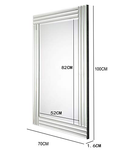 RICHTOP Muro Specchio Grande Moderno Triplo smussato Rettangolare Classico Semplice Argento Specchio da Parete per Soggiorno, Corridoio 70 x 100cm