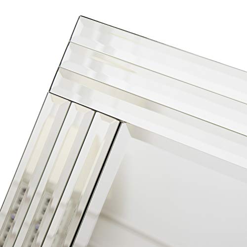 QUALITÀ PREMIUM: Lo specchio a parete senza cornice fatta di specchi d'argento di alta qualità e supporto in legno velveted. Il vetro è montato saldamente al legno solido nucleo per migliorare la sicurezza e la stabilità. Questo specchio resistente può durare per molti anni. Noi siamo per la qualità dei nostri specchi a parete veneziani.