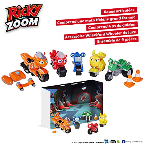 PRONTO PER L'AZIONE: Questo fantastico pacchetto include i 5 amici della serie TV Ricky Zoom: Ricky, Helen, Scootio, Loop e Dj. Corri con i tuoi amici e divertiti molto!