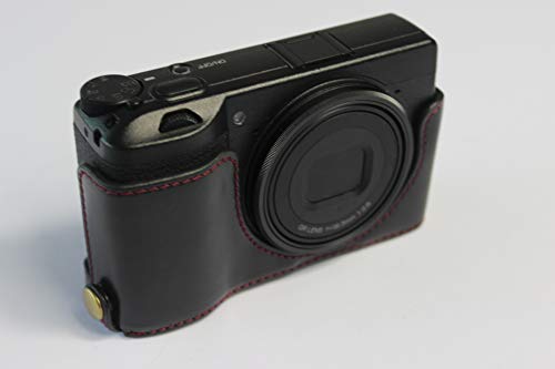 Ricoh GR III Case, Zakao Custodia a fondina in pelle PU con apertura a mezza parte inferiore per fotocamera con cinghia da polso, custodia protettiva per Ricoh GR III (nero)