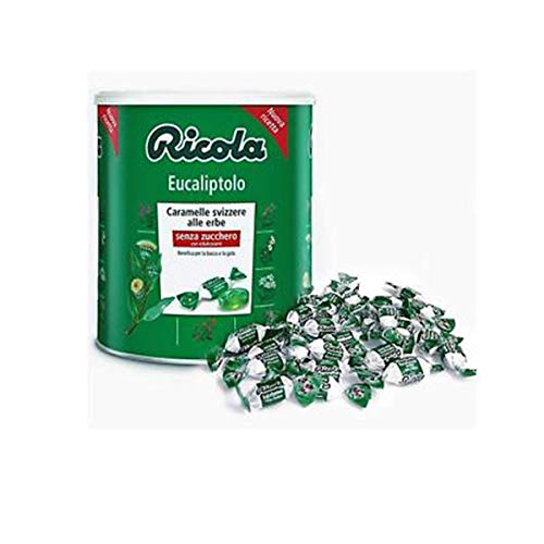 Ricola caramelle sfuse all' Eucalipto erbe balsamiche delle montagne svizzere: Buone di natura. Le erbe della Ricola sono coltivate in terreni accuratamente scleti per garantine la massima qualità e genuinità. Senza zucchero, senza glutine. Peso 500gr.