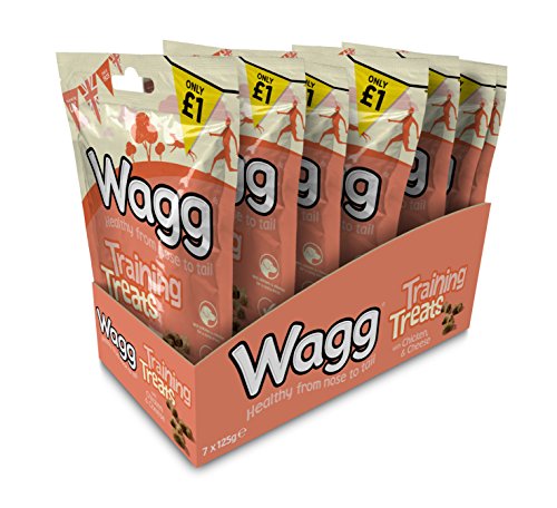 Wagg Training Treats with Chicken & Cheese are the ideal training aid for all dogs. Small bone shapes are great for a tasty reward and perfect for puppy training. With no added sugar, no artificial colours or flavours and oven baked for a great taste.