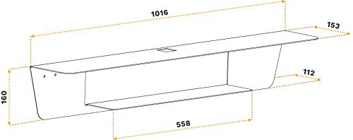 Attacco per montaggio di cassa barra altoparlante a muro sopra o sotto televisione. Dimensioni 1016mm x 153mm (livello superiore) e 558mm x 112mm (ripiano portaoggetti). Capacità di carico 10kg max. Distanza dal muro 153mm. Nero
