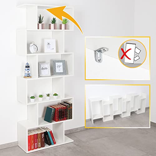 RICOO Libreria scaffale 192 x 70 x 25 cm WM070-WM Scaffalatura con 6 Ripiani Bianca Opaca