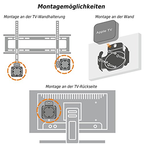 Opzione di montaggio: Questo supporto Apple TV Box è per montaggio su supporto TV seguente: Supporto per TV orientabile inclinabile, TV supporto piatto, supporto televisore fisso, supporto per monitor, staffe monitor, supporto per schermo, montaggio TV, staffa a parete