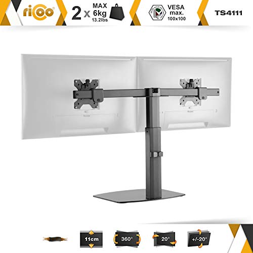 RICOO Supporto monitor scrivania TS4111 Girevole Inclinabile Schermi 17-27" (43-69 cm) Braccio schermo PC Staffa universale VESA 75 x 75 100 x 100