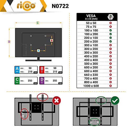 RICOO Supporto TV parete N0722 Inclinabile Fisso Televisore 23-42" (58-107 cm) Staffa universale Televisione LED/LCD/Curvo VESA 100 x 100-200 x 200