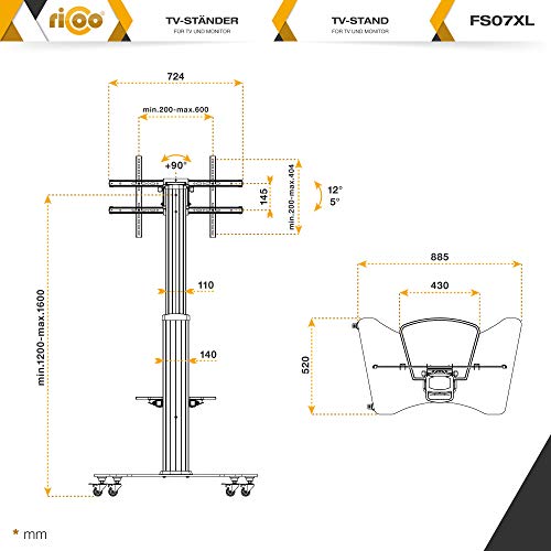 ✅ FUNZIONI: Porta TV per televisioni è girevole a mezzo di piede ruote. Inclinabile da +12/-5 gradi. Altezza regolabile. Ripiani sono resistente fino a 5kg. Portaoggetti per lettore DVD o CD Hi-Fi. Sostegno con nascondi cavi entro la colonna