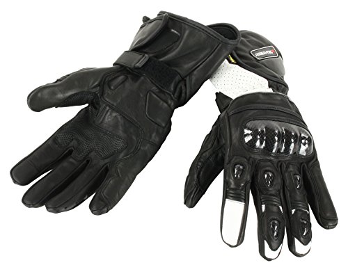 RIDER-TEC Guanti Moto Estivi, in & Mezza Stagione in pelle rt4302, Nero/Bianco, Taglia XL