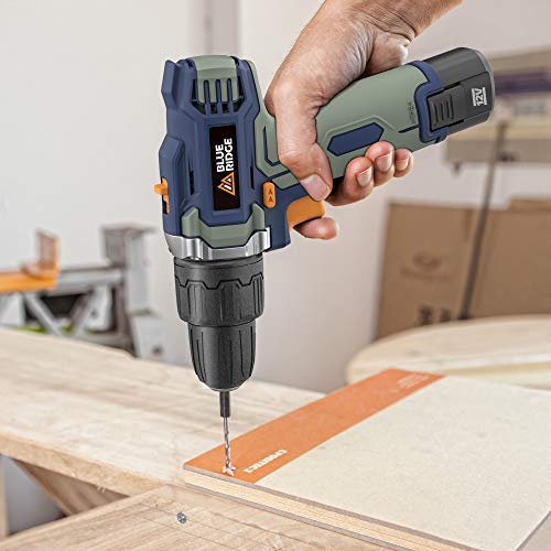 BLUE RIDGE Trapano avvitatore a batteria 12 V MAX con 15 accessori (1 batteria, 1 ora, caricatore rapido, 25 Nm, coppia max, 2 marce, mandrino a sgancio rapido da 10 mm), legno, metallo BR2102