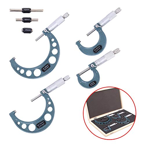 ❤Questo set da micrometro include 4 micrometri con campi di misura: 0mm-25mm, 25mm-50mm, 50mm-75mm, 75mm-100mm