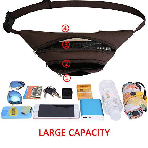 Ridirun Marsupio con 4 Tasche Marsupio Bum Bag Cintura Regolabile Singola Spalla per Escursionismo Casuale Bicicletta Escursione Campeggio (Marrone)