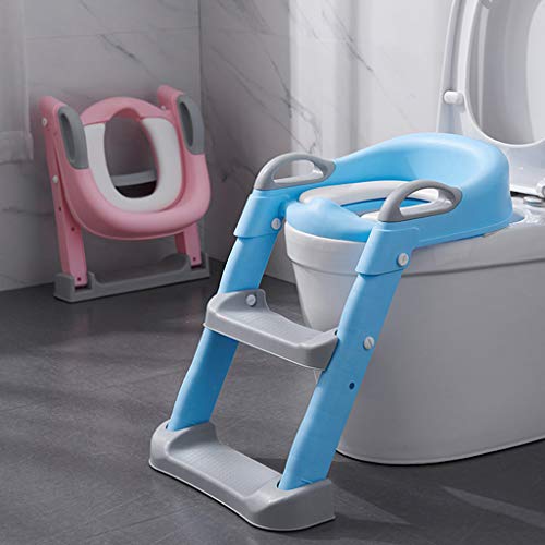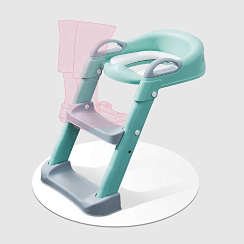 QLTY Riduttore WC per Bambini,con Scaletta,Design Pieghevole e Regolabile in Altezza,Kit Toilette,Baby Training WC vasino Sedile con scaletta,(Verde/Blu/Rosa)