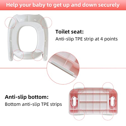SICURO E ADATTO AI NEONATI - L' asse da vasino per bambini che imparano ad usare la toilette è progettata con pannelli anti-scivolo e una scaletta per prevenirne il movimento. L' asse da vasino per bambini in apprendimento ha un morbido cuscino ed un para-schizzi. Progettato