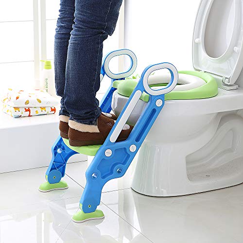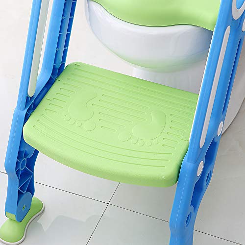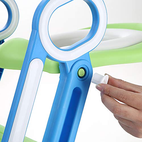 Riduttore WC con Cuscino Tenero, Sedile WC per Bambini con Scala, vasino per Bambini con Scala, Adatto per Imparare a Usare Il WC (blu verde)