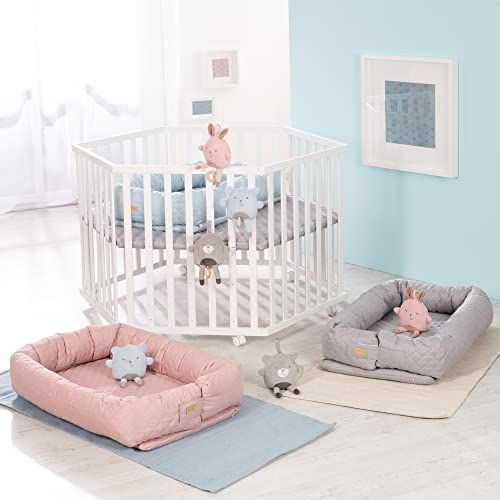 Roba Riduttore per Lettino 3 in 1 roba Style, Lettino da Viaggio, Materassino Fasciatoio, da 0 a 6 Mesi, Paracolpi, Jersey di Cotone, Regalo Nascita, Compleanno, Natale, Rosa