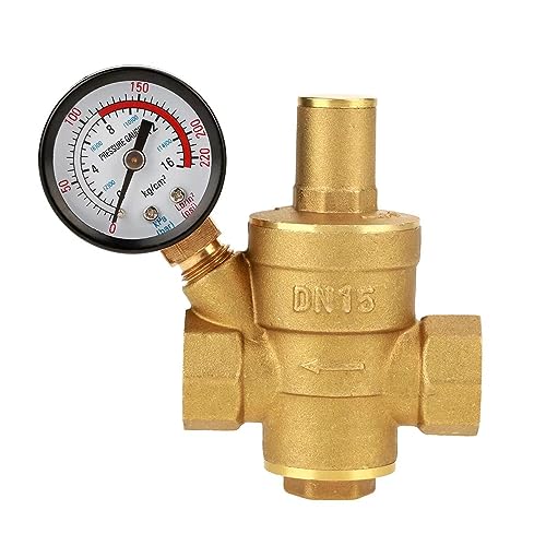 Riduttore di pressione dell'acqua con manometro, riduttore di pressione dell'acqua, in ottone, 1/2 pollice DN15, controllo dell'acqua regolabile, valvola di regolazione della pressione, filettatura