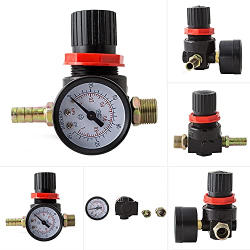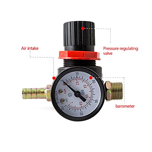 Riduttore di pressione da 1/4", regolatore di pressione, valvola di regolazione della pressione, valvola di regolazione con manometro, 145 PSI, per compressore d'aria, compressore d'aria - 3 fori